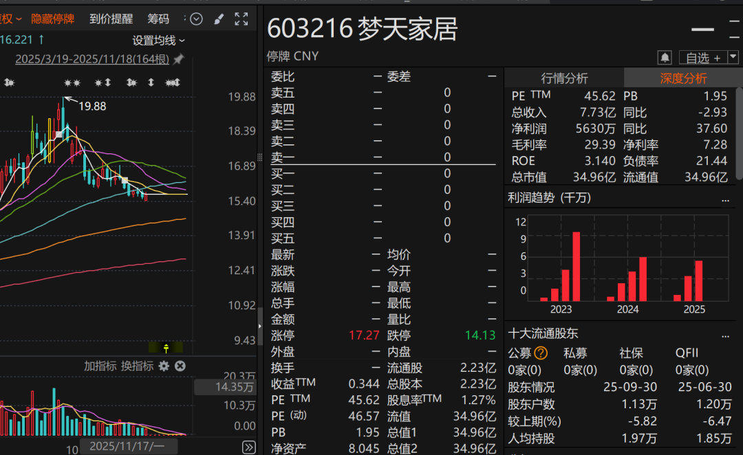 规则11月5日,梦天家居总市值为34.96亿元。