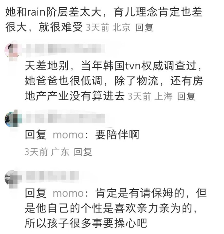 除了育儿的难懂,她和丈夫rain在育儿理念上也存在不合,也许这亦然她如斯窘迫的原因之一吧。