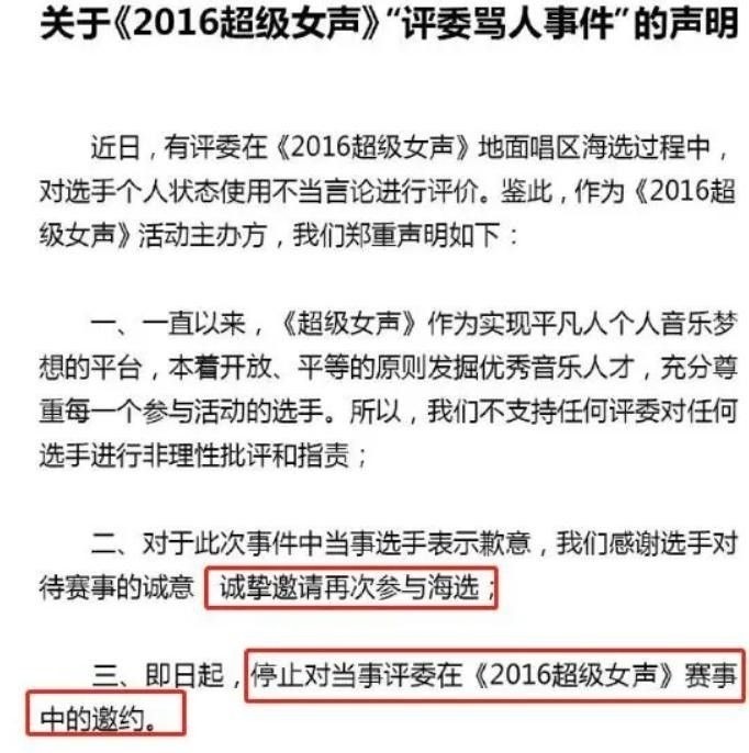2016年湖南卫视《超等女声》海选时间,又名选手因伤风向评委阐明气象欠安,柯以敏当即打断:“别唱了,飞速下去!”