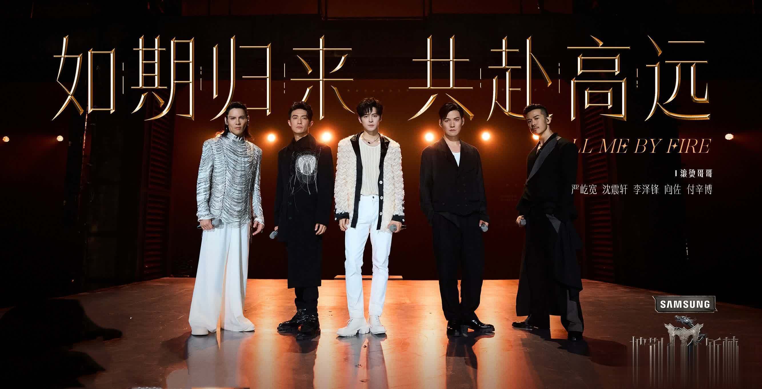 8.严屹宽、沈震轩、李泽锋、向佐、付辛博带来《单恋一枝花》。五位都长得相配的爷们。