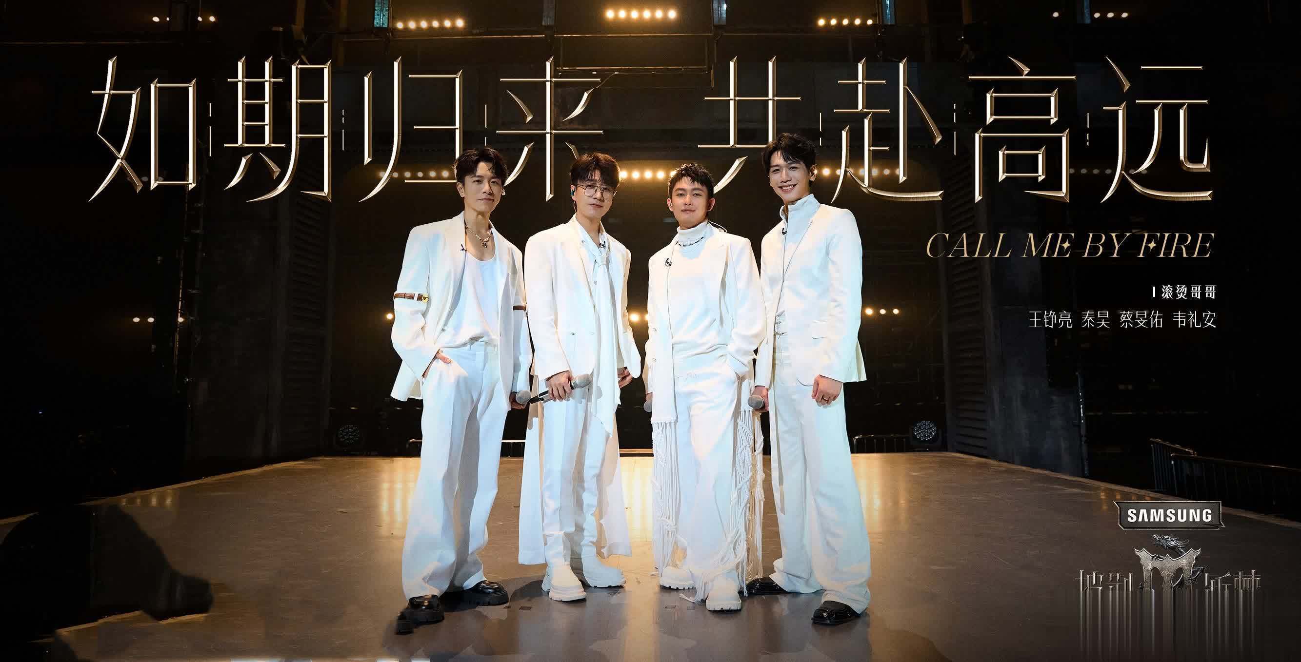 4.王铮亮、秦昊、蔡旻佑、韦礼安带来《爱就一个字》。选曲得胜,大气磅礴,允洽哥哥。