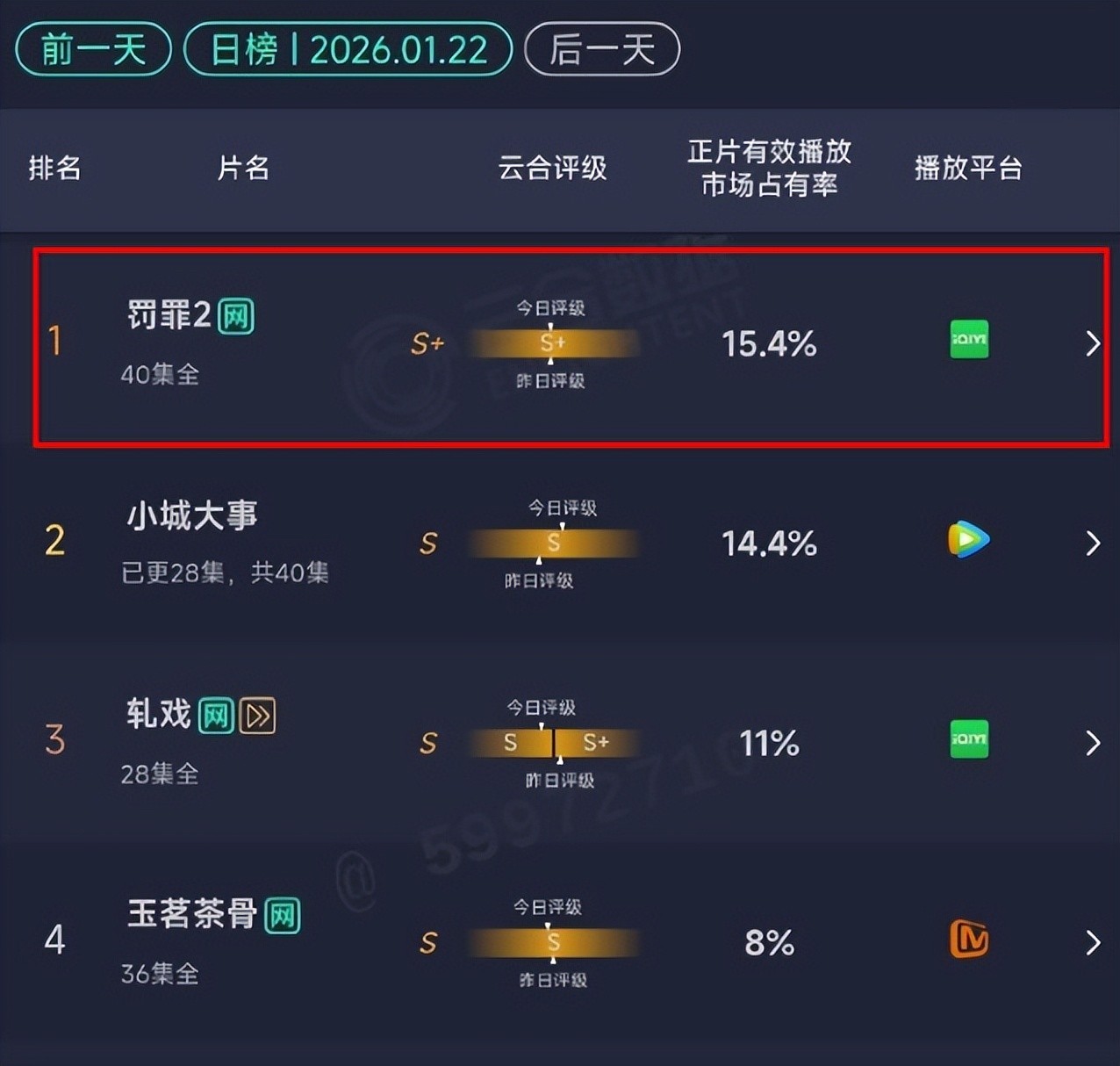 当《轧戏》迎来大结局后,全球王人以为《小城大事》运行发力的时辰,一件出东谈主预思的事情发生了,因为出现一部“黑马剧”,就算《轧戏》和《小城大事》获取的热度比拟高,但这部剧的云合正片灵验播放市集占有率遥远排在第别称,这部剧即是《罚罪2》。