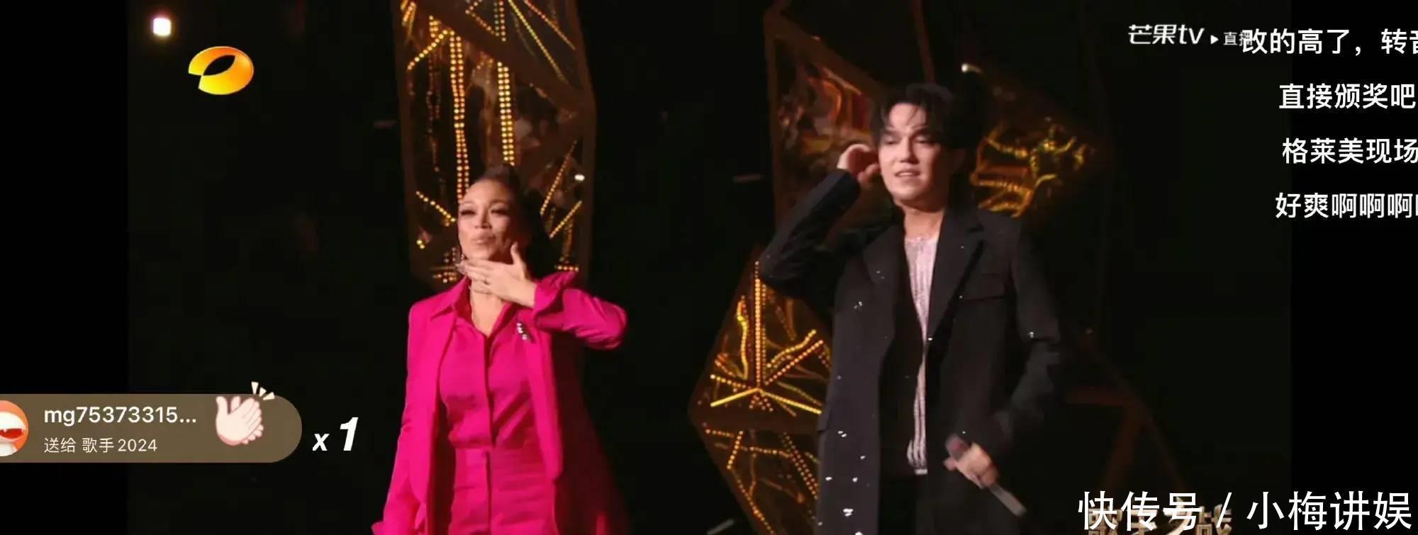 香缇莫与迪玛希联手带来了《Lose Control》,这首歌曲的R&B作风悉数是香缇莫的主场。两东谈主的合营无疑是强强汇集,他们的声息在舞台上无缺会通,共同构建了一个充满节拍感和心绪抒发的音乐宇宙。香缇莫以她那充满磁性的嗓音,加上迪玛希那险些无可抉剔的高音,让整场饰演充满了爆发力和感染力。