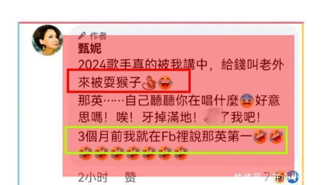 事实上,除了不雅众关于那英成为歌王一事的质疑除外,就连一些圈内东谈主也对此事抒发了我方的见解,比如说就有一位华语女歌手甄妮,她就在网上发文,针对那英成为歌王一事进行了炮轰