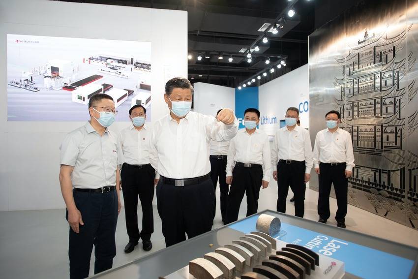 2022年6月28日下昼,习近平总通知在武汉华工激光工程有限职守公司激光科技馆,察看激光本事产业应用展品。(图源:新华社)