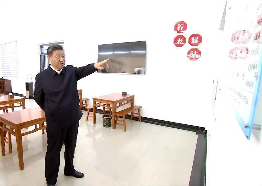 2024年11月5日上昼,习近平总通知在咸宁市嘉鱼县潘家湾镇四邑村养老服务驿站食堂查考。(图源:央视新闻)