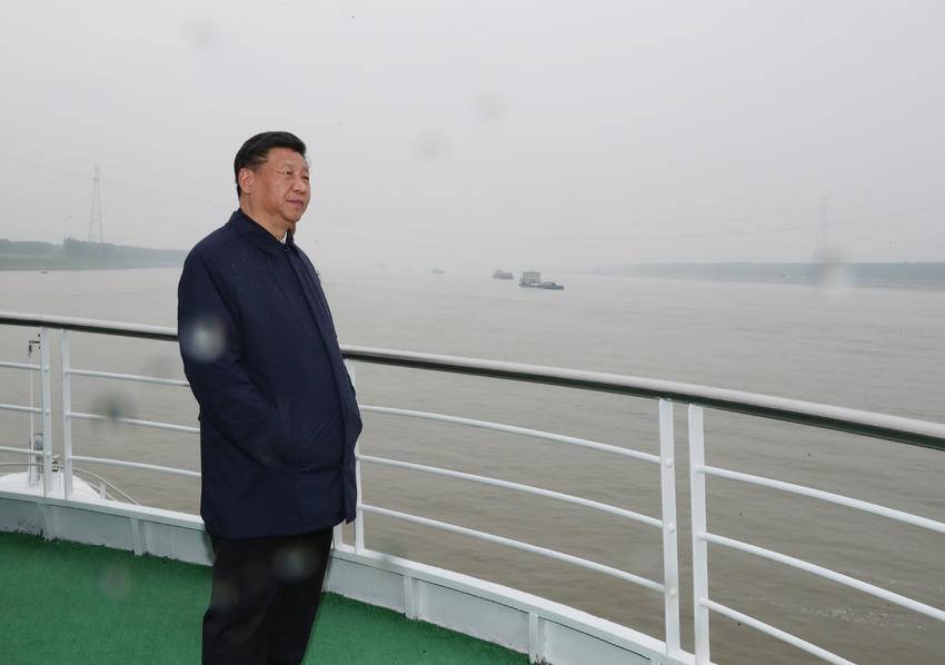 2018年4月25日,习近平总通知从荆州港船埠登上汽船,沿长江进行查考。总通知来到船面,凭栏远眺。长江边,他留住殷殷嘱托,“一定要给子孙后代留住一条清洁秀好意思的万里长江”。