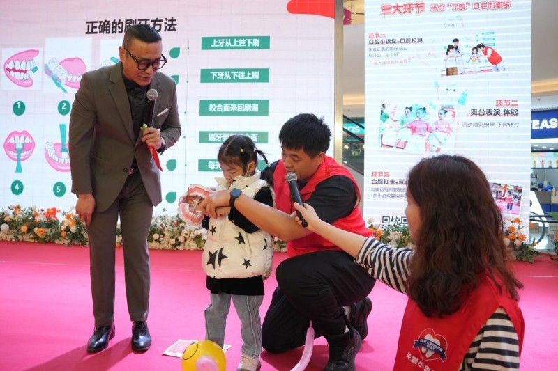 除了干货满满的口腔常识课堂,行径现场还尽心叮嘱了四大千里浸式互动体验区,让孩子们在玩乐中加深对防龋护牙的健硕。免费口腔检测区中,专科口腔医师为每一位到场儿童作念了精粹的口腔查验,针对龋齿、牙菌斑等儿童常见口腔问题,逐个给出个性化照看提倡,同期耐性解答家长们的各样疑问;口腔常识展示与绘本阅读区,通过图文并茂的展板、原理原理透彻的护牙绘本,让孩子们在自主阅读、目田探索中,解锁牙齿的“小奥秘”;刷牙体验区配备了舒客宝贝专科儿童护牙器具,孩子们在志愿者的戒备疏导下,反复肃肃正确刷牙动作,把课堂上学到的手段紧紧安闲;冠军姆妈郭晶晶合照打卡区,更是蛊惑了宽阔亲子家庭驻足参与,借助榜样的力量,传递疼爱口腔健康的生涯理念。