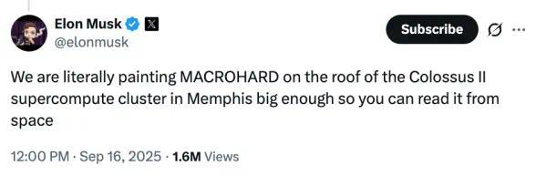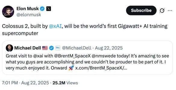 另一边,马斯克正在孟菲斯赶紧布局。那一年,他公开晓示xAI要在孟菲斯诱惑“Gigafactory of Compute”——世界上最大的超等计较机集群,取名Colossus。