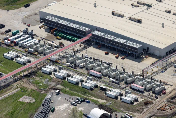 在紧邻Colossus2、3的发电厂,那些发电机像一瞥排拖车大小的铁家伙,并列摆在那里。白昼它们呼呼冒烟,晚上24小时嗡鸣不啻,声息能传到半英里外的住宅区。