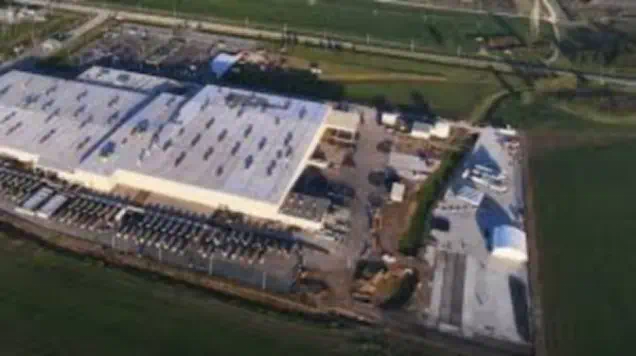 图注:Colossus 1全景航拍:大型白色厂房建筑群,泊车场和相近工业区|Action News 5
